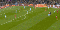 方向上實際上仍是薩拉赫VS奧賴利這一側,但在索博斯洛伊的幫助下順利打出,只不過維爾茨的轉身射門被曼城輕易堵住。
