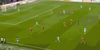 當角球進球被判越位在先之后,曼城的比分優勢得以保持。因此,在比賽末段,球隊的進攻勢頭再起,左右兩路的優勢均已極為明顯: